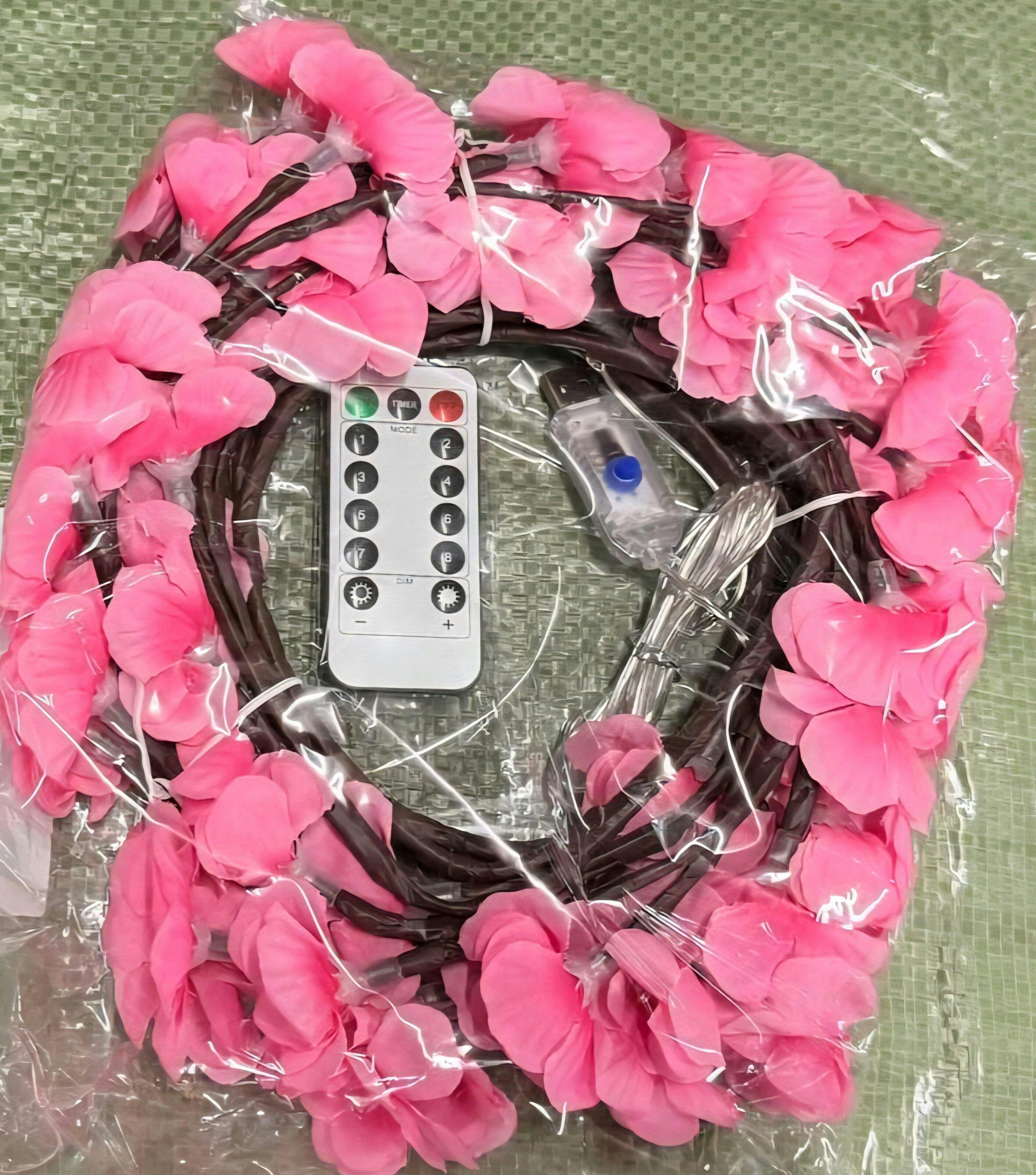 1 × Cherry Blossom LED Garland Light, 1 × Remote Control , 1 × USB Connector, Acrylic Wall Fixators & Nails for secure and easy installation, Decorative Flowers (Pre-attached)